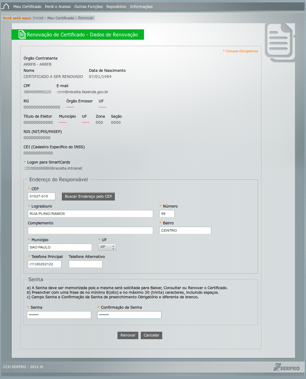 Caso alguma informação esteja incorreta ou desatualizada, o processo de renovação não deverá ser realizado, pois o novo certificado sairá com as mesmas informações incorretas/desatualizadas.